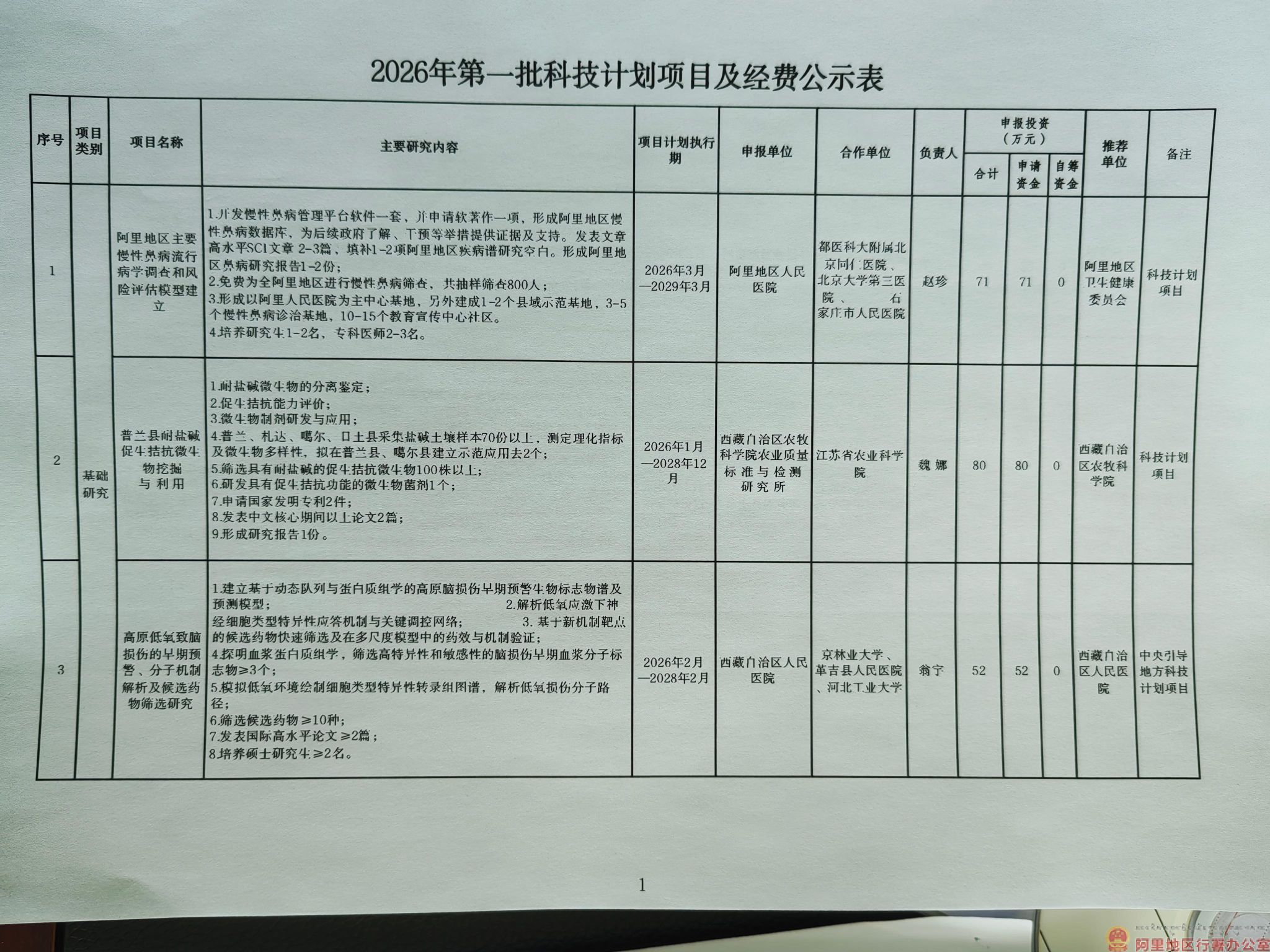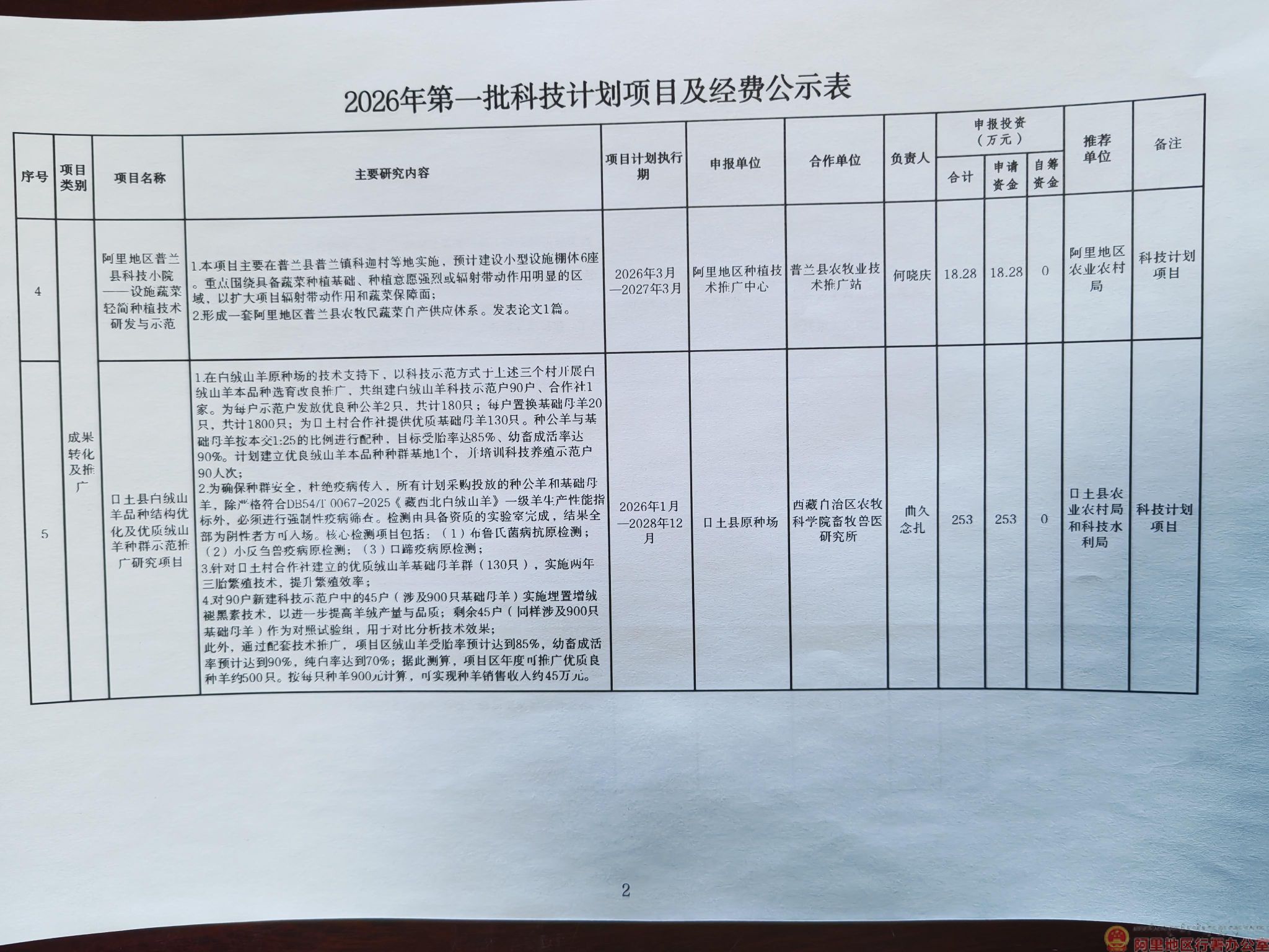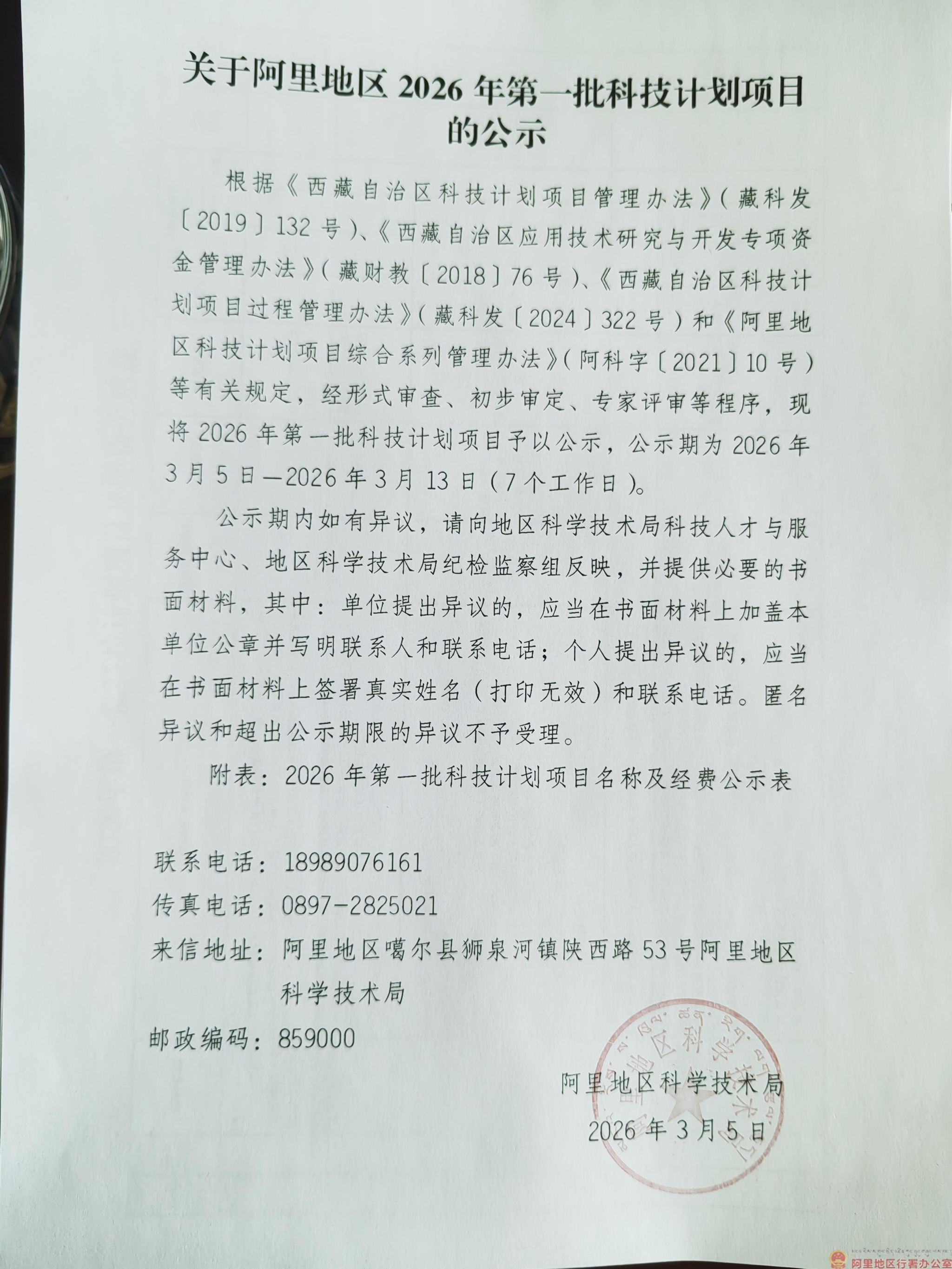 关于阿里地区2026年第一批科技计划项目的公示